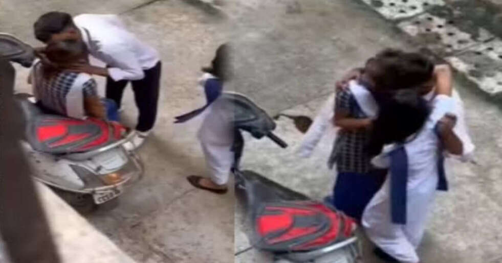 ದೊಡ್ಡವರಂತೆ ಹದಿಹರೆಯ ಮಕ್ಕಳು ಕೂಡಾ ಪ್ರೀತಿ ಪ್ರೇಮದ ಬಲೆಗೆ ಸಿಕ್ಕಿ ದಾರಿ ತಪ್ಪುತ್ತಿರುವ ಘಟನೆ ಹೆಚ್ಚಾಗುತ್ತಿದೆ. ಅದರಲ್ಲೂ ಕೆಲ ಪ್ರೇಮಪಕ್ಷಿಗಳು ಎಲ್ಲೆಂದರಲ್ಲಿ ಅತಿರೇಕದ ವರ್ತನೆ ತೋರುತ್ತಿರುತ್ತಾರೆ. ಅದೇ ರೀತಿ ಇಲ್ಲಿಬ್ಬರು ಹೈಸ್ಕೂಲ್ ವಿದ್ಯಾರ್ಥಿಗಳು ನಮ್ಮನ್ನು ಯಾರಾದ್ರೂ ನೋಡ್ತಾರೆ ಅನ್ನೋ ಭಯ, ನಾಚಿಕೆ ಇಲ್ಲದೆ ನಡು ರಸ್ತೆಯಲ್ಲಿಯೇ ರೊಮ್ಯಾನ್ಸ್ ಮಾಡಿದ್ದಾರೆ.