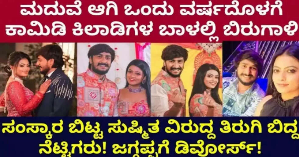 ಕನ್ನಡದ ಟಿವಿ ಆರ್ಟಿಸ್ಟ್ಗಳಾದ ಸುಶ್ಮಿತಾ ಹಾಗೂ ಜಗಪ್ಪ ಸೆಲಬ್ರಿಟಿ ಜೋಡಿ. ಮಜಾಭಾರತದ ಮೂಲಕ ಪ್ರಸಿದ್ಧಿಗೆ ಬಂದ ಈ ಜೋಡಿ ಕಳೆದ ವರ್ಷದ ನವೆಂಬರ್ನಲ್ಲಿ ವೈವಾಹಿಕ ಜೀವನಕ್ಕೆ ಕಾಲಿಟ್ಟಿದ್ದರು. ಸಾಕಷ್ಟು ಶೋಗಳಲ್ಲಿ ಜೊತೆಯಾಗಿಯೇ ಭಾಗವಹಿಸಿದ್ದ ಜೋಡಿ, ವೇದಿಕೆಯ ಮೇಲೆ ಸಾಕಷ್ಟು ಬಾರಿ ಗಂಡ-ಹೆಂಡತಿ ಪಾತ್ರದಲ್ಲಿಯೇ ನಟಿಸಿದ್ದರು.