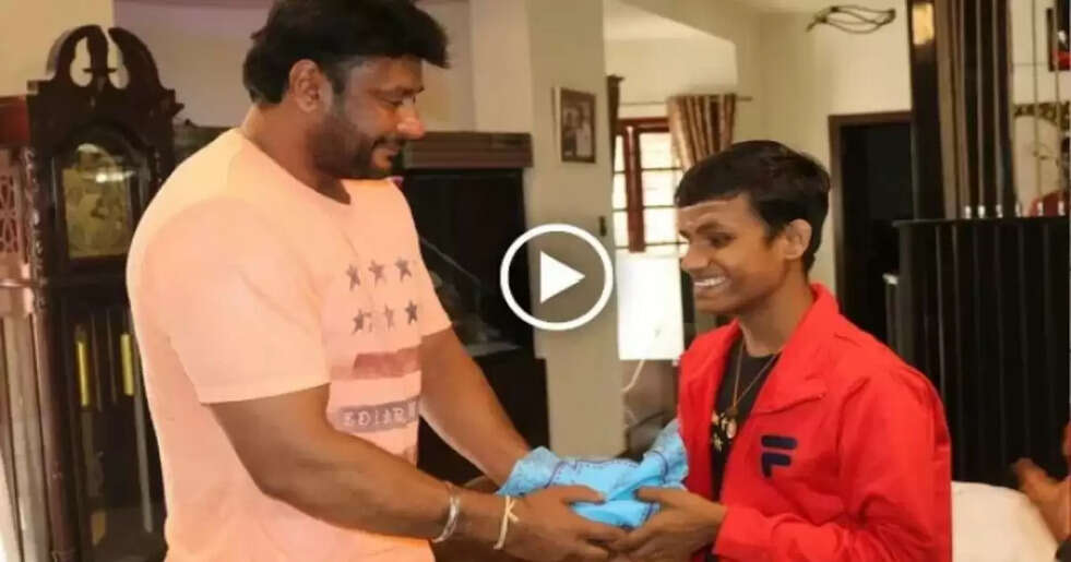 ನಟ ದರ್ಶನ್ ಅವರಿಗೆ ದೊಡ್ಡ ಅಭಿಮಾನಿ ಬಳಗವಿದೆ. ದರ್ಶನ್ ಅವರ ಮನೆ ಮುಂದೆ ನಿತ್ಯ ನೂರಾರು ಅಭಿಮಾನಿಗಳು ಸರದಿ ಸಾಲಿನಲ್ಲಿ ನಿಂತು ನೆಚ್ಚಿನ ನಟನನ್ನು ನೋಡಿಕೊಂಡು ಹೋಗುತ್ತಾರೆ. ಈಗ ದರ್ಶನ್ ಅವರು 'ಸರಿಗಮಪ' ಖ್ಯಾತಿಯ ರೇವಣ್ಣ ಅವರನ್ನು ಭೇಟಿ ಮಾಡಿದ್ದಾರೆ. ಬಹಳ ದಿನಗಳಿಂದ ರೇವಣ್ಣ ಅವರಿಗೆ ದರ್ಶನ್ರನ್ನು ನೋಡುವ ಆಸೆ ಇತ್ತಂತೆ.
