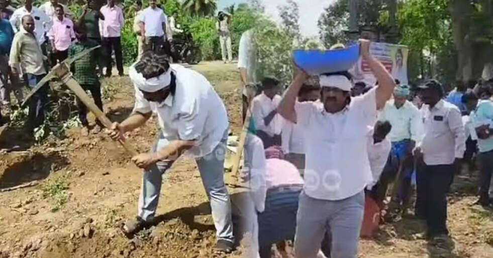 ಸರ್ಕಾರಿ ಶಾಲೆಗೆ ಗೋಡೆ ನಿರ್ಮಿಸಲು ಎದ್ದು ಬಿದ್ದು ಕೆಲಸ ಮಾಡಿದ ಶಿಕ್ಷಣ ಸಚಿವ ಮಧು ಬಂಗಾರಪ್ಪ