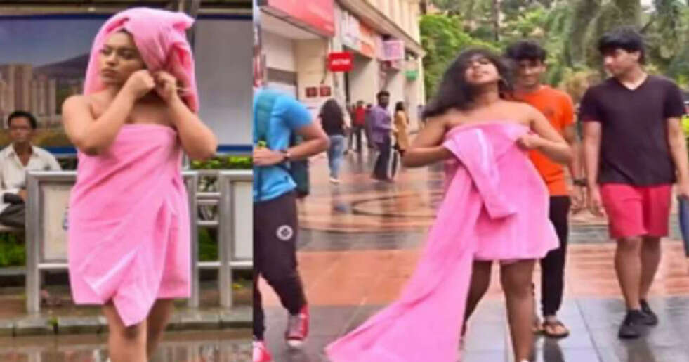 ಅಷ್ಟಕ್ಕೂ ಈ ವಿಡಿಯೋ ಮುಂಬೈನದ್ದು ಎನ್ನಲಾಗಿದೆ. ಮುಂಬೈನ ಬೀದಿಯಲ್ಲಿ ಹುಡುಗಿಯೊಬ್ಬಳು ಪಿಂಕ್ ಟವೆಲ್ ಸುತ್ತಿಕೊಂಡು ಮನೆಯಿಂದ ಹೊರಬಂದಳು. ಹುಡುಗಿಯನ್ನು ಈ ಸ್ಥಿತಿಯಲ್ಲಿ ನೋಡಿದ ಜನರು ನಿಬ್ಬೆರಗಾದರು. ಹುಡುಗಿ ಹೋದಲ್ಲೆಲ್ಲಾ ಜನರ ಕಣ್ಣು ಅವಳ ಮೇಲೆಯೇ ಇತ್ತು. ಅವಳು ಬಸ್ ಸ್ಟ್ಯಾಂಡ್ ಮೂಲಕ ಅಂಗಡಿಯ ಕಡೆಗೆ ಹೋಗುತ್ತಾಳೆ.