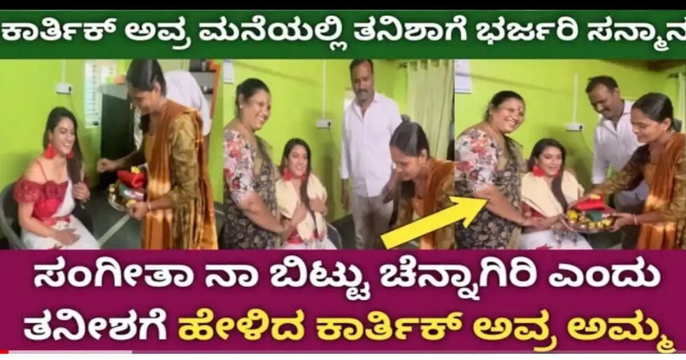 ಬಿಗ್ ಬಾಸ್ ಕನ್ನಡ 10 ವಿಜೇತ ಕಾರ್ತಿಕ್ ಮಹೇಶ್ ಮನಗೆ ತನಿಷಾ ಕುಪ್ಪಂಡ ಅವರು ಆಗಮಿಸಿದ್ದಾರೆ. ತನಿಷಾ ಅವರ ಕಾಲು ತೊಳೆದು ಅವರನ್ನು ಬರ ಮಾಡಿಕೊಳ್ಳಲಾಗಿದೆ. ಕಾರ್ತಿಕ್ ಅವರ ತಂಗಿ ತೇಜಸ್ವಿನಿ ಗಂಡು ಮಗುವಿಗೆ ಜನ್ಮ ನೀಡಿದ್ದಾರೆ. ಬಿಗ್ ಬಾಸ್ ಮನೆಯಿಂದ ಆಚೆ ಬಂದಕೂಡಲೇ ಮೈಸೂರಿಗೆ ತೆರಳಿ ಕಾರ್ತಿಕ್ ಕೂಡ ಮಗುವನ್ನು ಎತ್ತಿ ಆಡಿಸಿದ್ದರು. ಕಾರ್ತಿಕ್ ಅವರು ಬಿಗ್ ಬಾಸ್ ಮನೆಯಲ್ಲಿದ್ದಾಗಲೇ ಅವರ ತಂಗಿಯ ಹೆರಿಗೆ ಆಗಿತ್ತು.